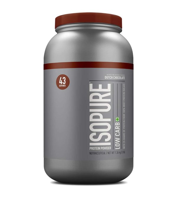 - Isopure Low Carb 3 lb Dutch Chocolate Contains 100% Whey Protein Isolate.